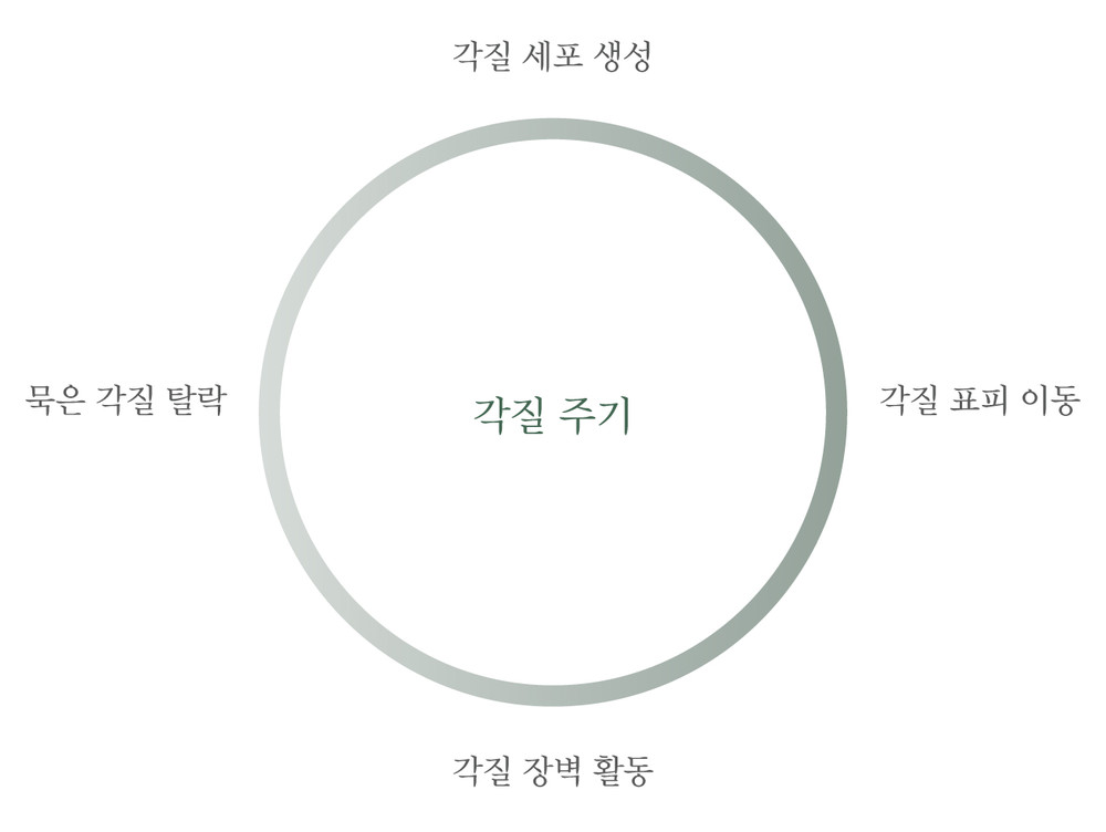 각질 정돈 토너로 묵은 각질이 부드럽게 떨어져나가게끔 도와주면 느려졌던 각질 주기가 정상화되면서 우리 피부가 각질을 생성하고 탈락하는 활동이 활발해져요. 이것은 눈에 보이는 변화 이상으로 우리 피부가 본래의 기능을 원활하게 수행하도록 돕는 근본적인 변화입니다.